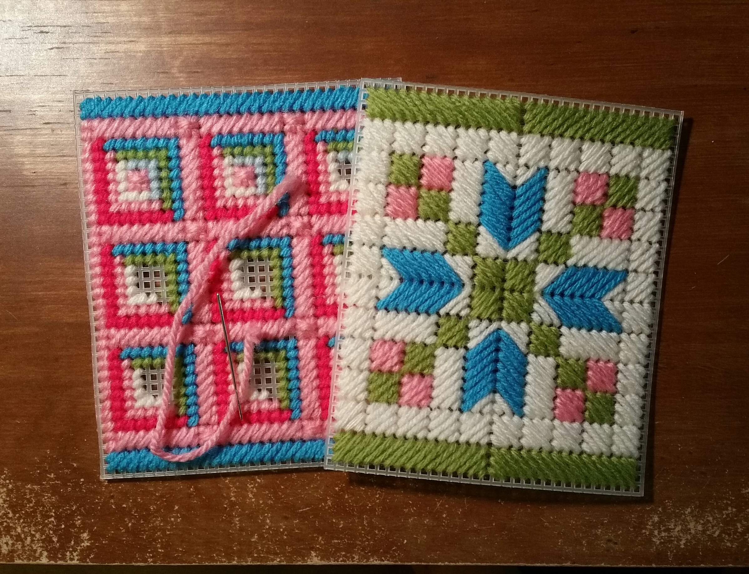 The day kind of got away from me, so I never sat down to write a blog post. I started another plastic canvas tissue box cover, this one is for my oldest daughter’s foster daughter.
