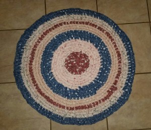 A few months ago, I learned how to make Amish knot rag rugs watching YouTube videos. I completed two more round rugs, about 36″ across and one oval rag, that’s around 45″ long, using all fabric I already had: