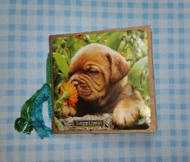 This month I made about 7 or 8 quick and easy paper bag books, using small paper bags, old scrapbook paper and calendar pictures. Here are a couple photos: