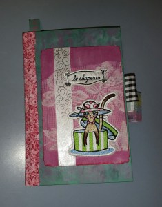 I also got another altered book finished. The piece of lace behind the cat applique is actually a piece of an old lace curtain that had a tear in it, so I decided to use bits of it in craft projects: