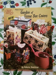 I regret tweeting so much last night and this morning, but at least my time on Twitter wasn’t a total waste. I started another plastic canvas needlepoint tissue box cover and managed to get one side done (photo at the top) and started the 2nd side. I stitched as I followed Twitter. This pattern is called In-the-Pink Zinnias, from an old plastic canvas leaflet: