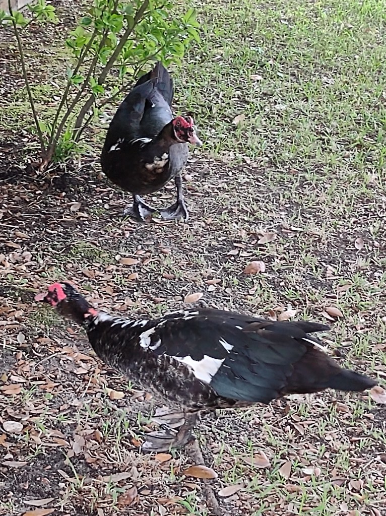 Looked out at my front yard this morning and what to my wondering eyes should appear. The duck now has a friend visiting.