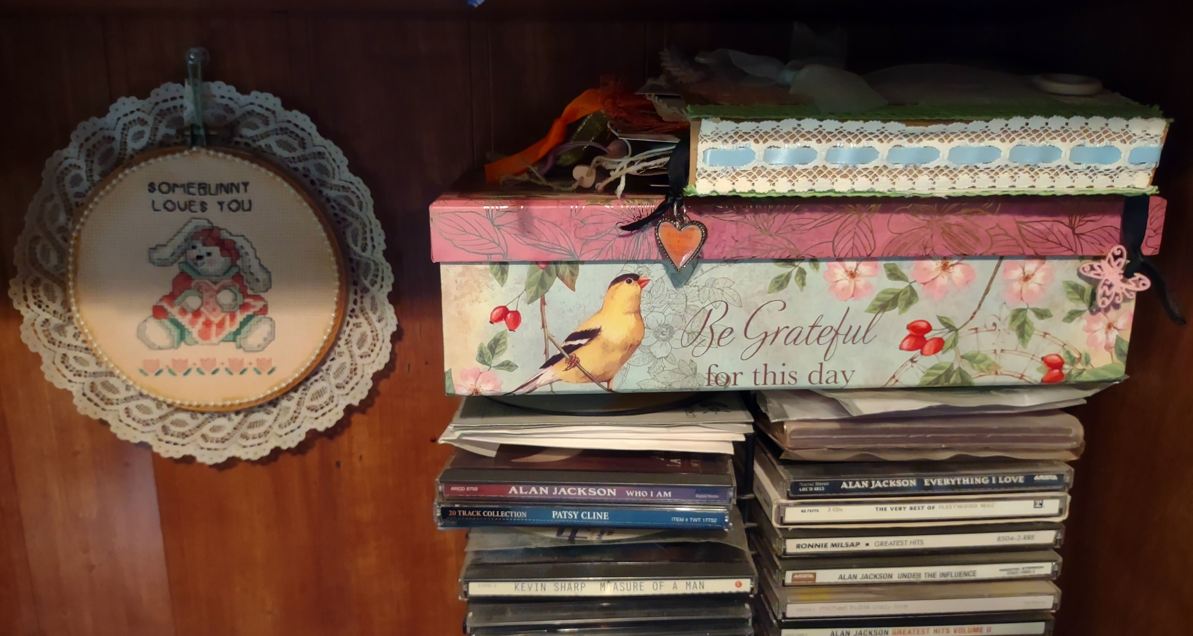 I bought this little box a few years back and I keep small office supplies in it on my desk. I like things with sayings on them and “Be grateful for this day,” is a good reminder.